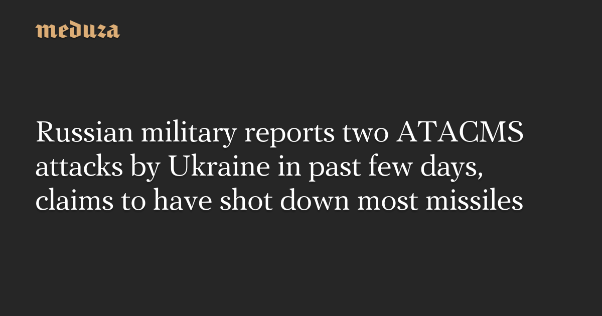 Russian military reports two ATACMS attacks by Ukraine in past few days, claims to have shot down most missiles