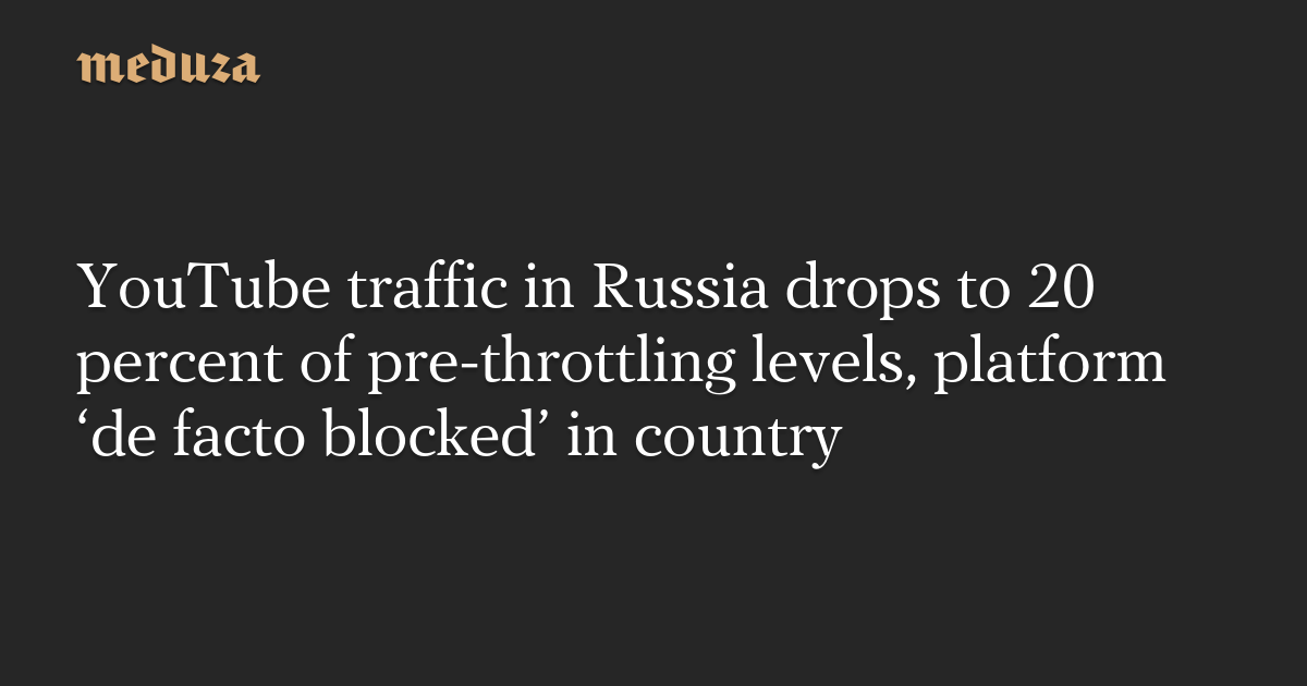 YouTube traffic in Russia drops to 20 percent of pre-throttling levels, platform ‘de facto blocked’ in country