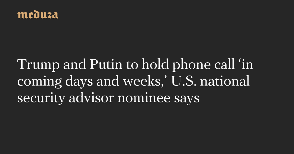 U.S. President-elect Donald Trump and Russian President Vladimir Putin are expected to hold a phone call “in the coming days and weeks,” Trump’s nominee for national security advisor, Mike Waltz, told ABC News on Sunday.