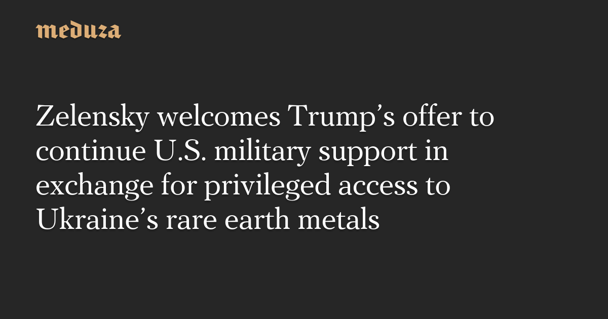 Zelensky welcomes Trump’s offer to continue U.S. military support in exchange for privileged access to Ukraine’s rare earth metals