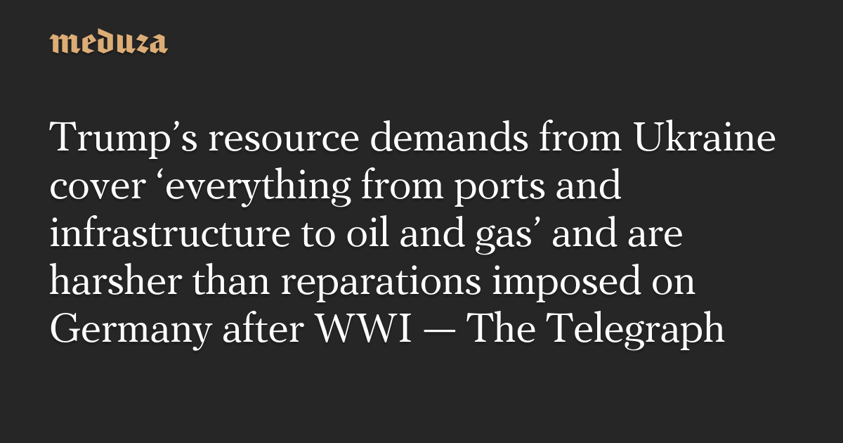 Trump’s resource demands from Ukraine cover ‘everything from ports and infrastructure to oil and gas’ and are harsher than reparations imposed on Germany after WWI — The Telegraph