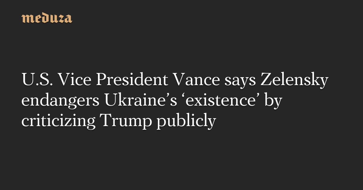 U.S. Vice President Vance says Zelensky endangers Ukraine’s ‘existence’ by criticizing Trump publicly