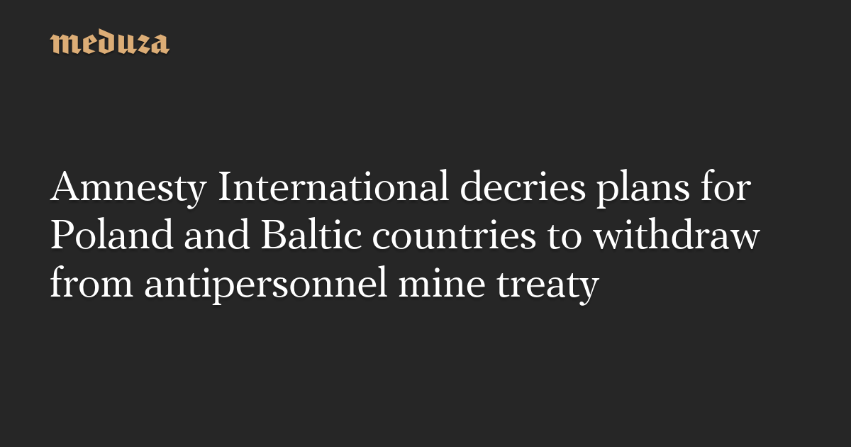 Amnesty International is urging Poland, Estonia, Latvia, and Lithuania to “urgently reconsider” plans to withdraw from the Ottawa Treaty, the international convention banning antipersonnel mines.