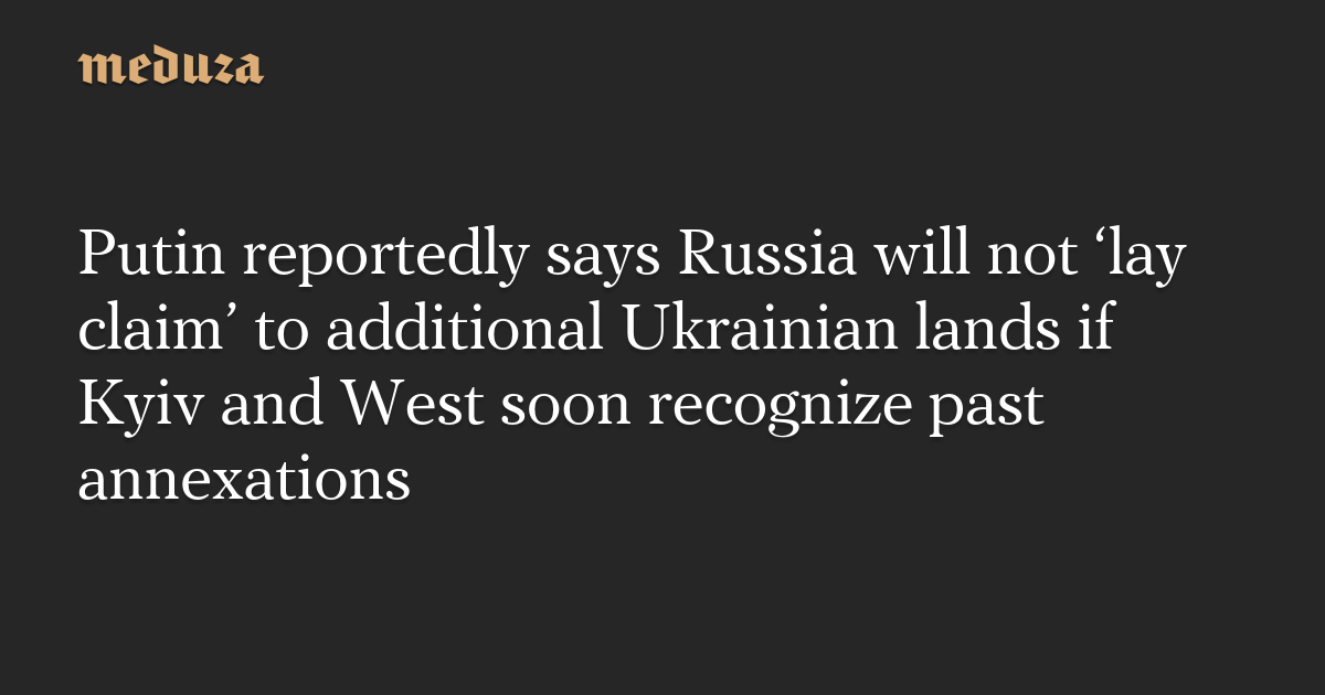 Putin reportedly says Russia will not ‘lay claim’ to additional Ukrainian lands if Kyiv and West soon recognize past annexations