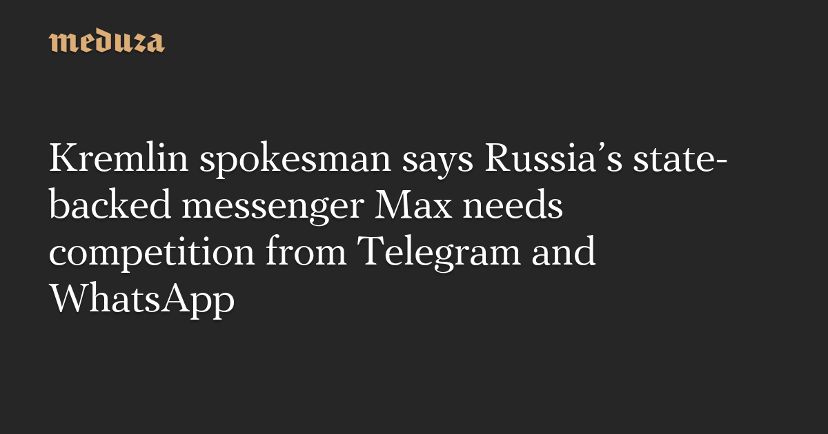 Kremlin spokesman says Russia’s state-backed messenger Max needs competition from Telegram and WhatsApp
