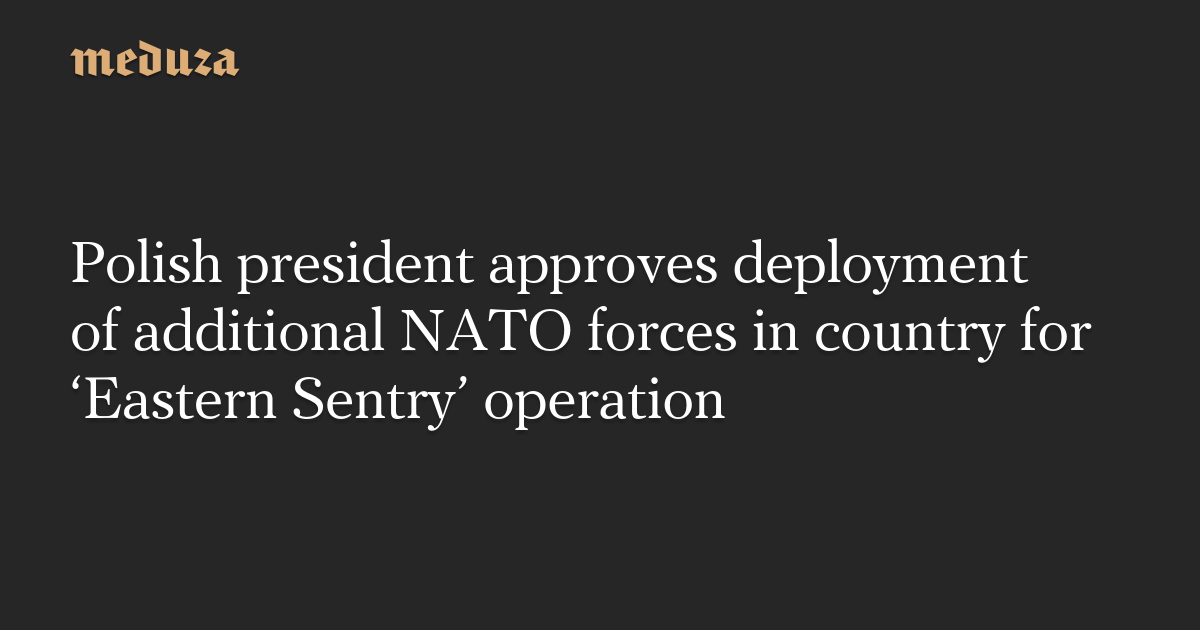 Polish president approves deployment of additional NATO forces in country for ‘Eastern Sentry’ operation