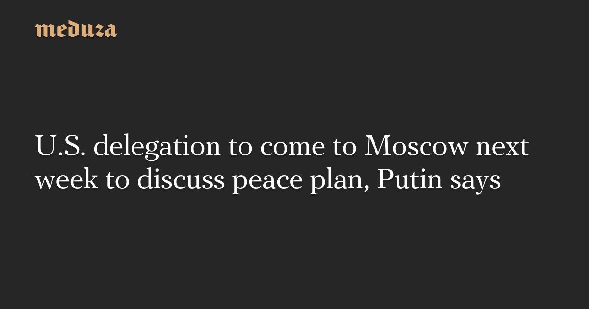 A U.S. delegation is set to travel to Moscow next week for talks on President Donald Trump’s “peace plan,” Russian President Vladimir Putin said on Thursday.