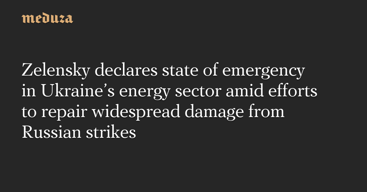 Zelensky declares state of emergency in Ukraine’s energy sector amid efforts to repair widespread damage from Russian strikes