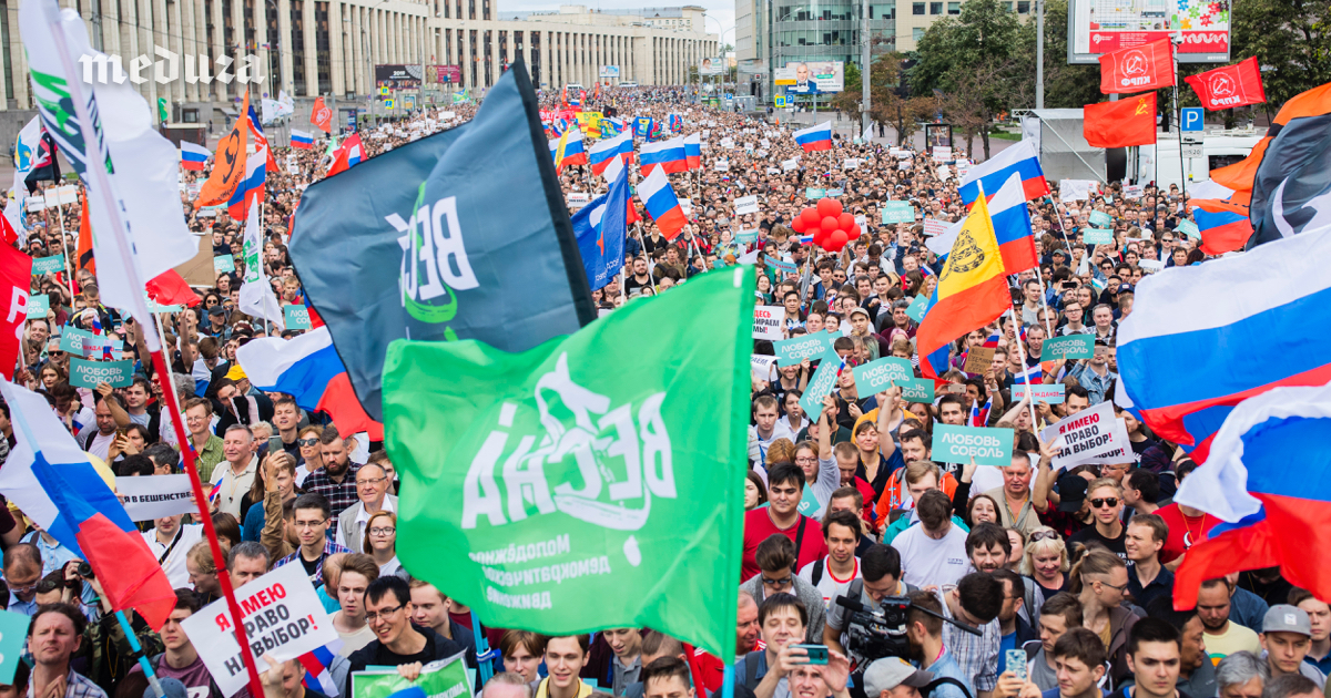 On July 20, protesters gathered on Moscow’s Sakharov Prospect to demand that opposition politicians running for Moscow City Duma seats be permitted to register their candidacy. According to the White Counter project, about 21,500 people had joined the protest by 3:30 PM local time.