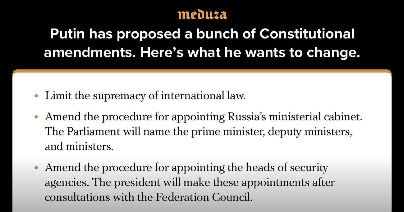A modest proposal Putin has suggested a bunch of Constitutional amendments. Here’s what he wants to change.