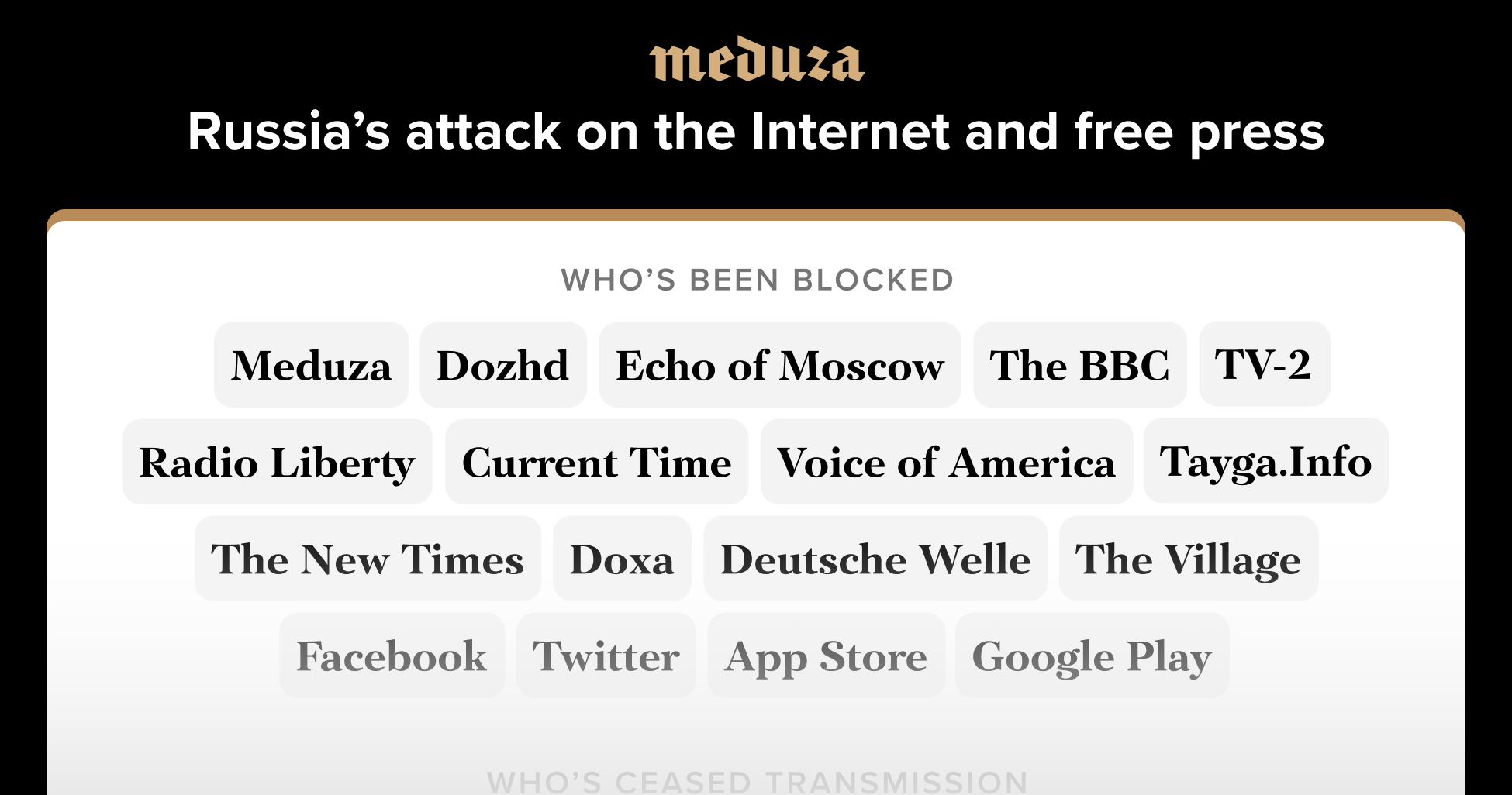 The day the news died Here are all Russia’s independent media outlets banned, blocked, or shuttered in just the past few days