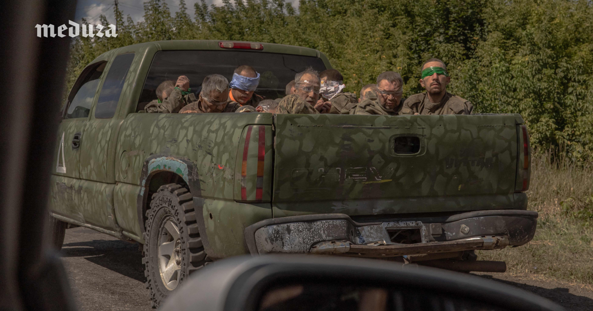 Blindfolded Russian prisoners of war being transported in Ukraine’s Sumy region, near the Russian border, on August 13. Since August 6, Ukraine has been conducting an operation in Russia’s Kursk region. On the evening of August 13, Ukrainian President Volodymyr Zelensky announced that “hundreds of Russian soldiers” had already surrendered and said Kyiv plans to exchange them for Ukrainian soldiers and civilians held by Russia. Zelensky added that all captured Russians “will be treated humanely.”