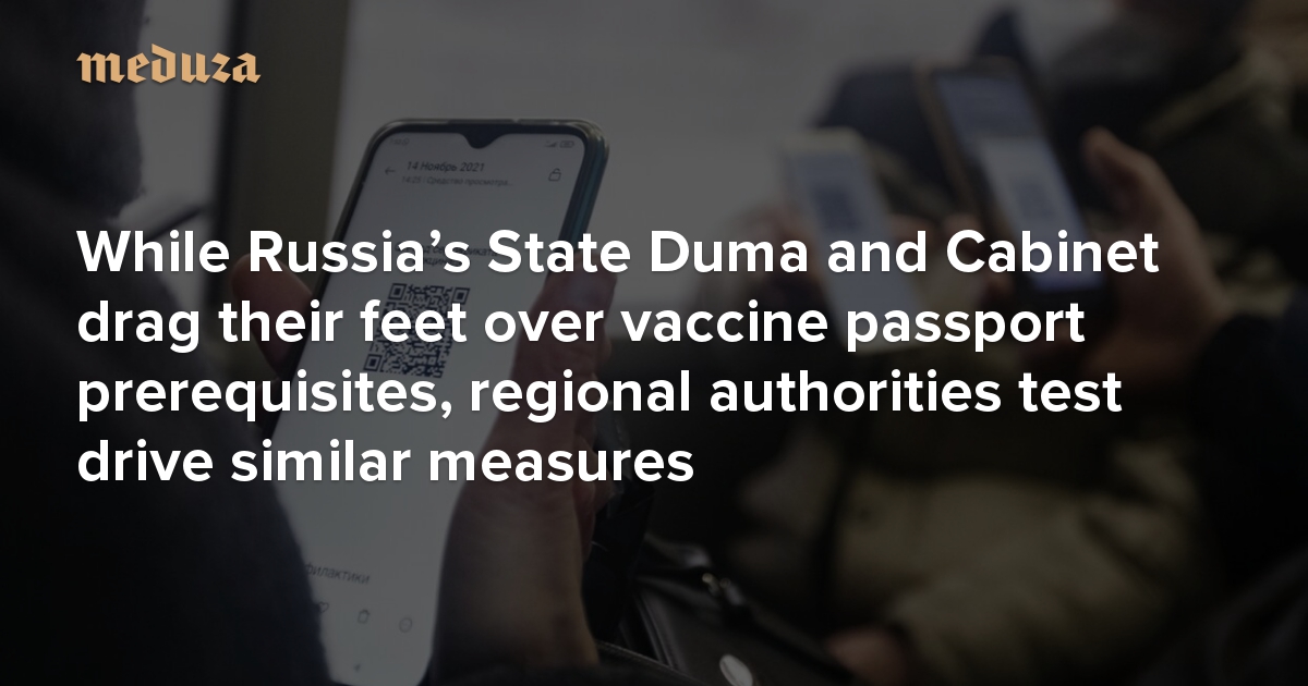 When the Russian Cabinet put forward draft legislation on introducing QR-code vaccine passport prerequisites at the federal level, many expected the State Duma to push the bills through swiftly. Instead, a decision was made to shunt the legislation to the regions for feedback, ahead of parliamentary committees reviewing the documents in mid-December. Russia’s Udmurt Republic, Primorsky Krai, and Ryazan Region have already announced their support for the bills, which would require QR codes for access to many public places and certain modes of transportation. However, the draft legislation isn’t scheduled to go to the floor of the State Duma in December. As Meduza previously reported, the Cabinet and the Kremlin have yet to decide on the fate of the bills. In the meantime, the vast majority of Russia’s regions are already test driving their own versions of the proposed QR-code system.