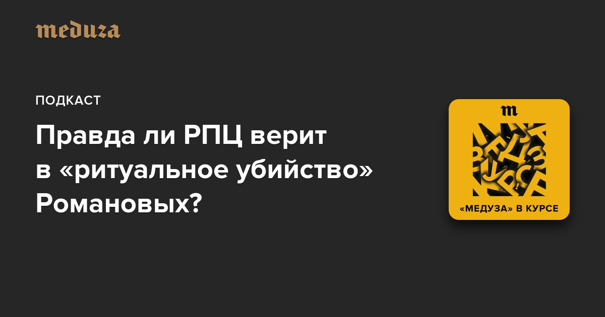 Журналисты «Медузы» Алексей Пономарев и Евгений Берг вместе с Ксенией Лученко, журналисткой и автором нескольких книг о церковной жизни, обсуждают новый всплеск интереса к обстоятельствам убийства Николая II и его семьи, в частности, версию о «ритуальном убийстве». А во второй части подкаста разбирают с редактором «Медузы» Ольгой Страховской дела другого монархического семейства — непростую (по ряду причин) свадьбу британского принца Гарри и американской актрисы Меган Маркл.