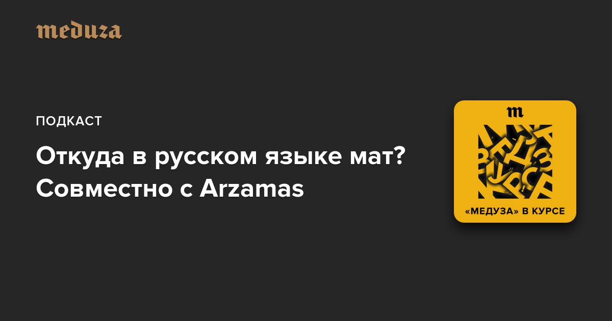 Пока все (и «Медуза в курсе» не исключение!) на каникулах, предлагаем вам послушать отличный подкаст наших друзей из просветительского проекта «Арзамас» о природе русского мата. Ведущие — Кирилл Головастиков и Александр Уржанов. Вы услышите цензурную версию подкаста, версия без цензуры выложена на канале «Арзамаса» в YouTube. Слушать курсы, подкасты и другие аудиоматериалы «Арзамаса» удобнее всего здесь.