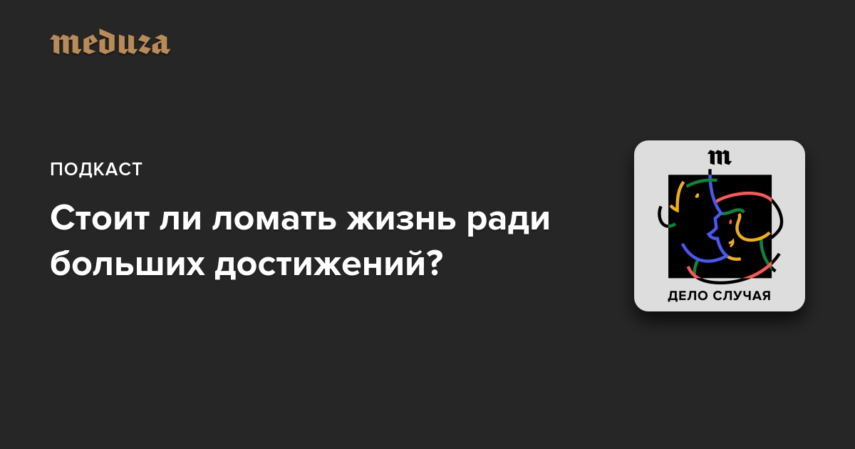 Катя Кронгауз и Андрей Бабицкий беседуют о том, как люди идут к большим достижениям — в спорте, искусстве и других сферах жизни — и чего это им стоит. Вспоминают фильмы («Одержимость», «Тренер», «Тоня против всех» и другие), где главным героям приходится преодолевать обстоятельства, но прежде всего себя. И главный вопрос этого выпуска: если вы понимаете, что ваш ребенок очень талантлив в определенной области, нужно ли жертвовать всем, чтобы он добился успеха?