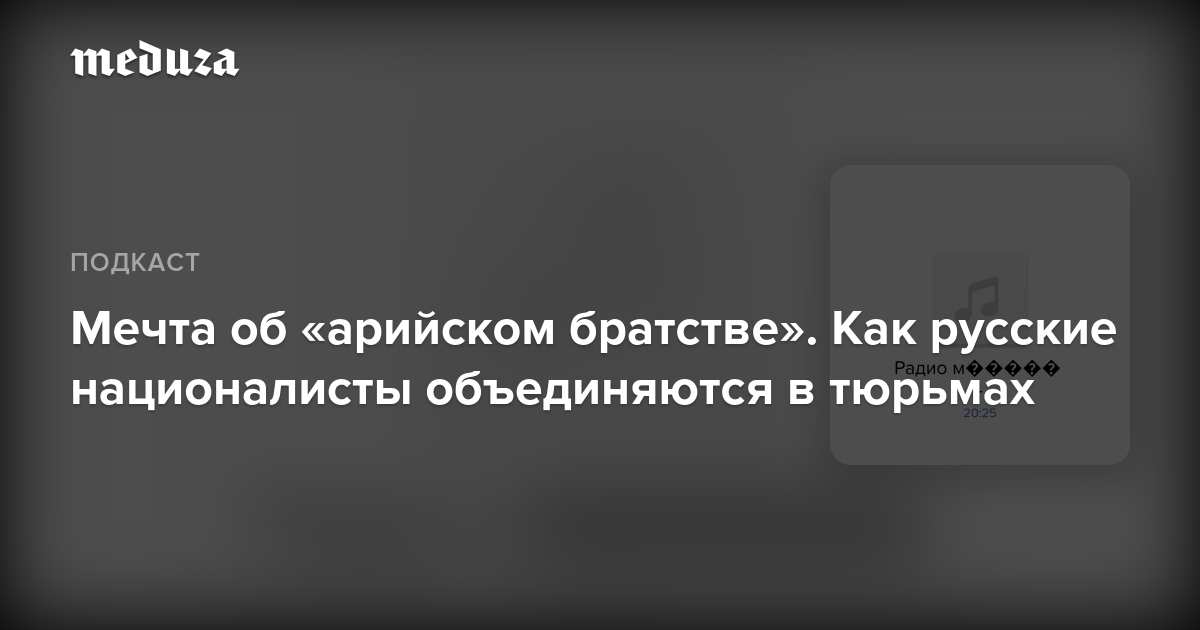Журналистка Саша Сулим рассказывает Константину Бенюмову о своей встрече с участником движения неонацистов «белая масть», а также о том, почему российские сторонники ультраправых пытаются объединиться. Редакция «Медузы» осуждает любые проявления национализма.