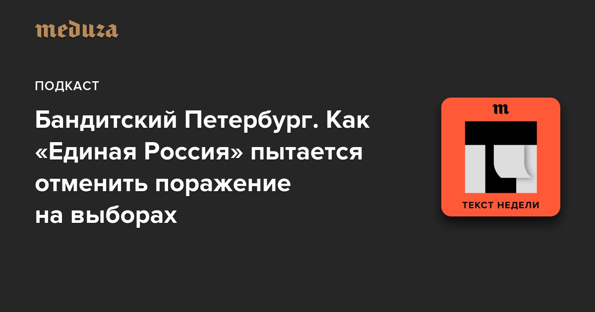Всю неделю спецкор «Медузы» в Санкт-Петербурге Павел Мерзликин следил за тем, что происходит в городе. В этом выпуске подкаста он рассказывает Константину Бенюмову, почему власть не смогла обеспечить нужные результаты «Единой России» в ходе голосования и почему теперь готова на крайние меры, чтобы сфальсифицировать его результаты на стадии подсчета.
