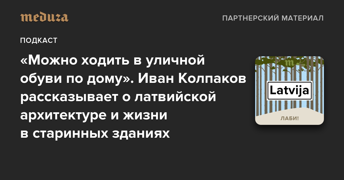 Во втором выпуске партнерского подкаста «Лаби!» ведущий Алекс Дубас обсуждает с главным редактором «Медузы» Иваном Колпаковым архитектуру и быт Латвии. Почему Ригу называют маленьким Парижем? За что упрекали улицу Альберта в начале XX века и как спустя сто лет она стала одним из символов Риги? Чем интересна архитектура Юрмалы, Сабиле и других городов? И почему местные жители считают Ежика в тумане своим?
