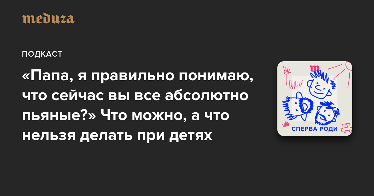 «Сперва роди» выходит по вторникам. Чтобы не пропустить новые эпизоды, подписывайтесь на подкаст в Apple Podcasts, «Яндекс.Музыке», Castbox и на «Букмейте». И не забывайте писать нам письма: в телеграм @meduzalovesyou (там можно отправлять аудиосообщения!) или на почту [email protected].