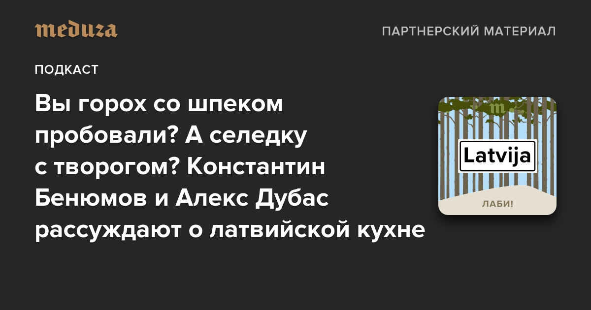 В третьем выпуске партнерского подкаста «Лаби!» ведущий Алекс Дубас обсуждает с редактором «Медузы», автором подкаста «Текст недели» Константином Бенюмовым, что вкусного и необычного можно съесть в Латвии. С чего начинается гастрономическая Рига? Где искать устрицы, мидии, миногу и угря? И какие рестораны в Латвии сейчас самые модные?