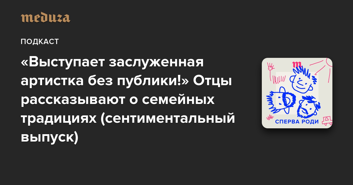 🎙 «Сперва роди» выходит по вторникам. Чтобы не пропустить новые эпизоды, подписывайтесь на подкаст в Apple Podcasts, «Яндекс.Музыке», Castbox и на «Букмейте». И не забывайте писать нам письма: в телеграм @meduzalovesyou (там можно отправлять аудиосообщения!) или на почту [email protected].
