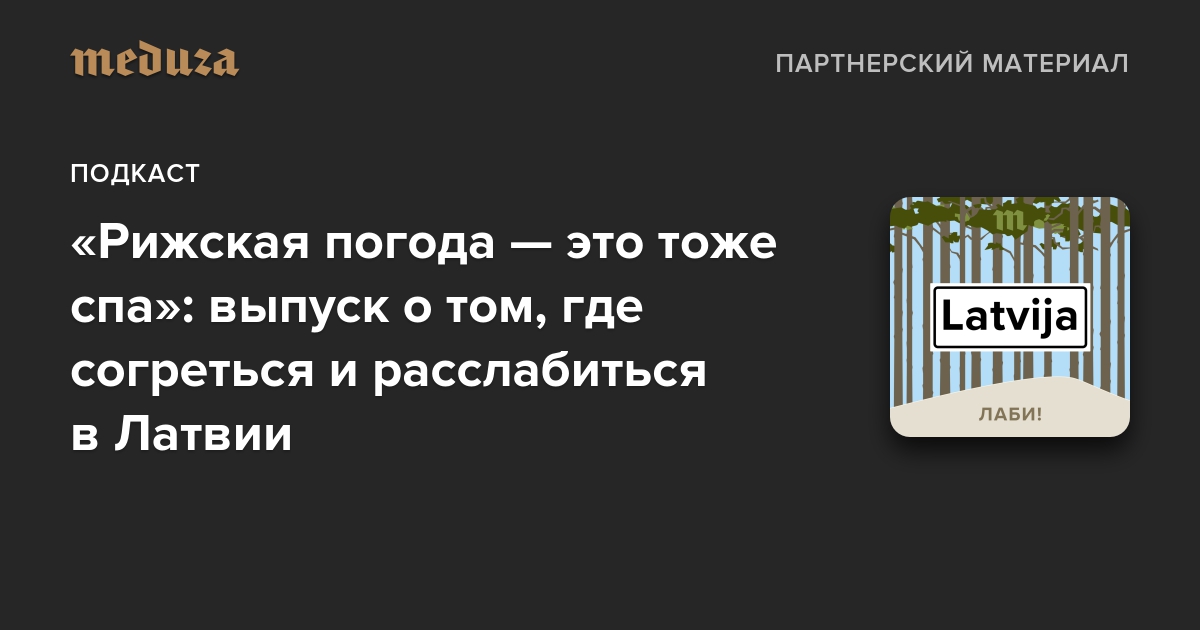 Что такое красота по-латвийски? Как согреться, когда на улице «рижский суп» (кстати, что это)? Необычные спа-процедуры, традиционные латвийские бани и другие способы перезарядиться — в девятом выпуске подкаста «Лаби!».