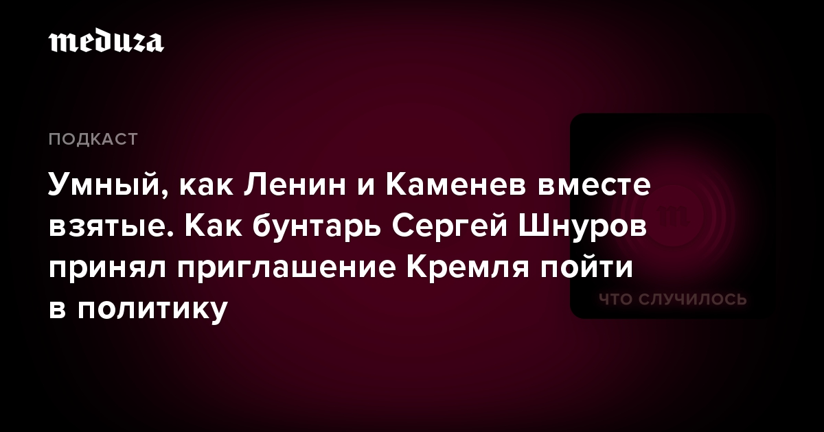 Ведущие подкаста «Что случилось» Ксения Миронова и Владислав Горин решили разобраться в том, зачем народному музыканту Шнурову политика. Для этого журналисты поговорили со специальным корреспондентом «Медузы» Андреем Перцевым и председателем Партии роста в Петербурге Павлом Швецом. Ну, и конечно связались с самим Шнуровым, который заявил, что выбрал «сложный, а не ложный путь».