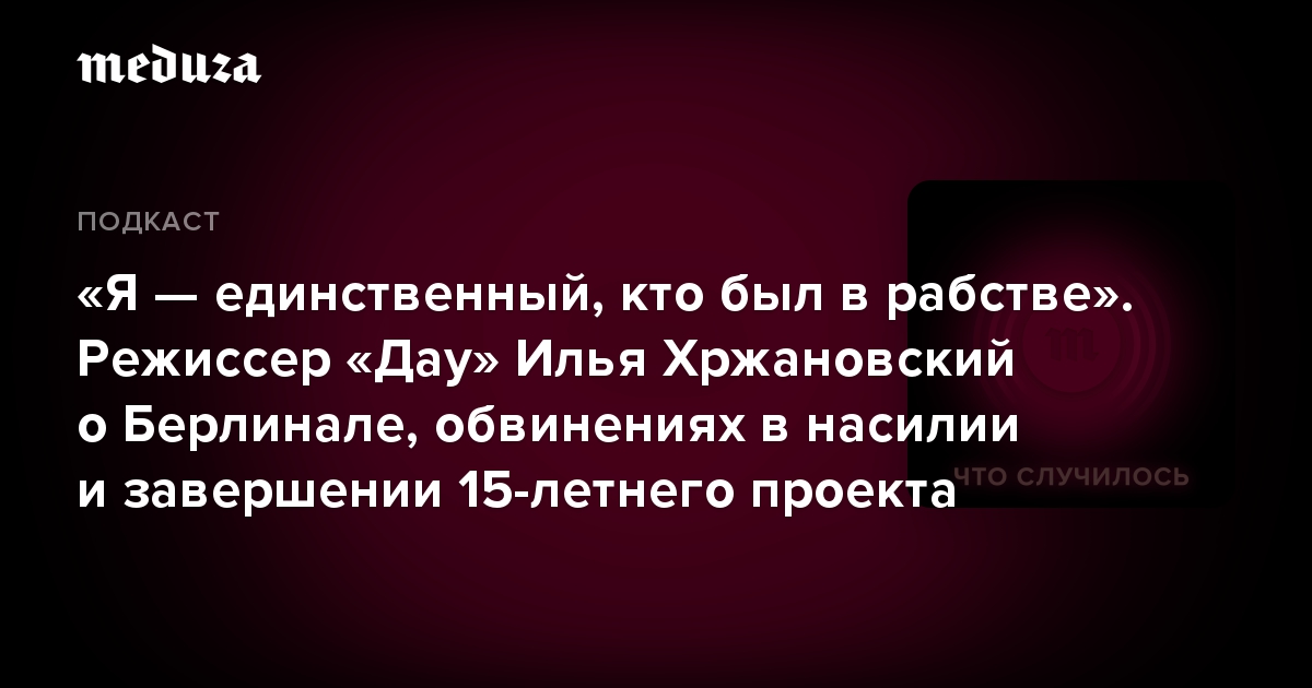 Ведущий подкаста «Что случилось» Владислав Горин задал кинорежиссеру Илье Хржановскому вопросы о насилии, цензуре (в России и на Западе), а еще о том, когда завершится начатый кинорежиссером гигантский проект под названием «Дау».