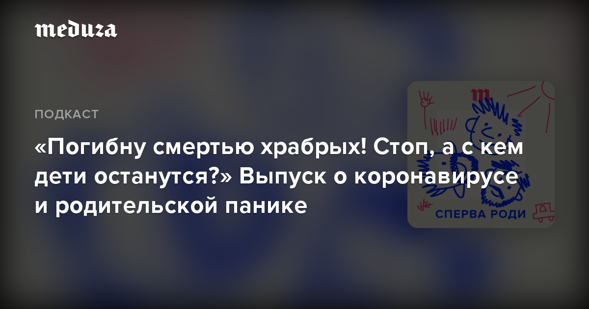 🎙 «Сперва роди» выходит по вторникам. Чтобы не пропустить новые эпизоды, подписывайтесь на подкаст в Apple Podcasts, «Яндекс.Музыке», Castbox и на «Букмейте». А еще у подкастов «Медузы» есть свой ютьюб-канал, там нас тоже можно слушать. И не забывайте, пожалуйста, писать нам письма: в телеграм @meduzalovesyou (мы любим аудиосообщения!) или на почту [email protected].