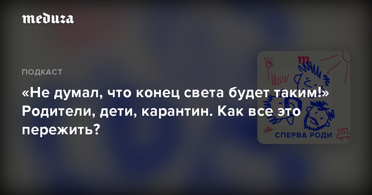 🎙 «Сперва роди» выходит по вторникам. Чтобы не пропустить новые эпизоды, подписывайтесь на подкаст в Apple Podcasts, «Яндекс.Музыке», Castbox и на «Букмейте». А еще у подкастов «Медузы» есть свой ютьюб-канал, там нас тоже можно слушать. И не забывайте, пожалуйста, писать нам письма: в телеграм @meduzalovesyou (мы любим аудиосообщения!) или на почту [email protected].