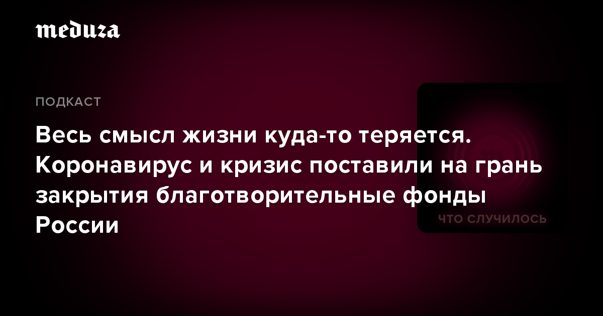 Это обращение — просьба о помощи: эпидемия коронавируса и экономический спад поставили многие благотворительные организации в России на грань выживания. Свою поддержку НКО сокращают многие компании (которые сами страдают из-за кризиса) и отдельные меценаты. При этом деньги — не единственная проблема.