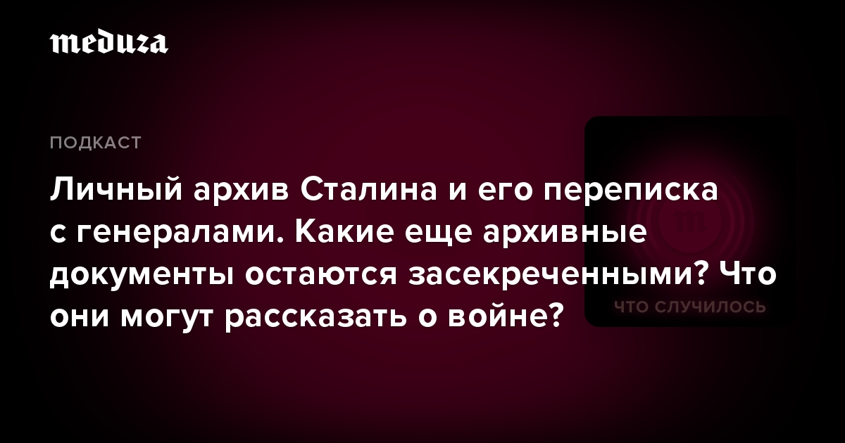 В подкасте «Что случилось» историк Леонид Максименков рассказывает, что нового засекреченные фонды могли бы рассказать о войне. И почему разные государственные ведомства современной России, включая разведку и министерство иностранных дел, препятствуют публикации документов, созданных в середине ХХ века.