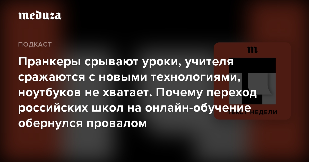 Каким получился вынужденный переход на онлайн-обучение? Почему российское образование оказалось не готово к карантину? Дело в учителях, министерстве или технологиях? В подкасте «Текст недели» говорим об этом с журналистом «Медузы» Марией Коломыченко.