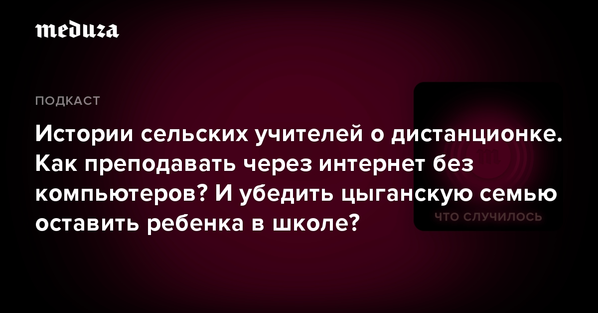 В новом эпизоде подкаста «Что случилось» истории трех учителей, работающих на селе. Учительница физики и информатики Валентина Иванова объяснила, как удалось перейти на дистанционное обучение маленькой сельской школе. Учитель английского языка Богдан Дедушкин рассказал, как он и его коллеги занимаются внеклассной активностью через интернет. А учительница начальных классов Наталья Полканова поделилась, как онлайн-образование помогло детям из семей, для которых русский язык не родной.