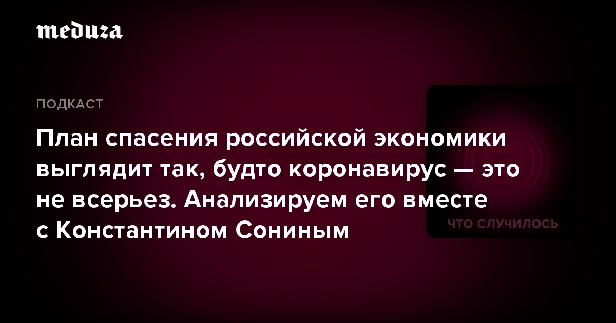 Насколько нынешний план поддержки экономики окажется полезным? Каким по масштабу будет кризис? Какими будут последствия для большинства граждан России? На эти вопросы в новом эпизоде подкаста «Что случилось» отвечает профессор Чикагского университета и московской Высшей школы экономики Константин Сонин.