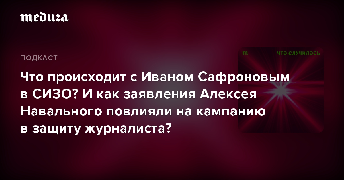 Как с Сафроновым обращаются в СИЗО? Как он себя чувствует? На чем строится общественная кампания защиты и как на ней сказалось критическое выступление Алексея Навального? В новом эпизоде подкаста «Что случилось» — журналисты Максим Иванов и Ксения Миронова (она девушка Сафронова).