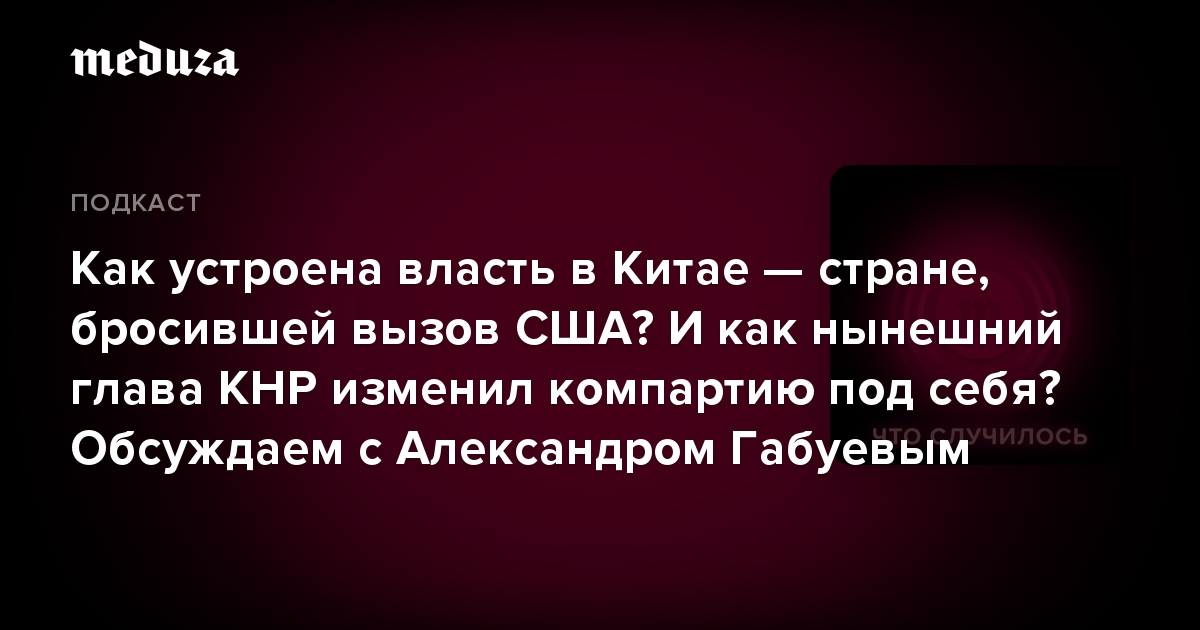 Что сейчас собой представляет китайская компартия? Как на нее влияет ухудшение отношений с США? И чем закончится это противостояние? В новом эпизоде подкаста «Что случилось» рассказывает Александр Габуев — руководитель программы «Россия в Азиатско-Тихоокеанском регионе» Московского центра Карнеги.