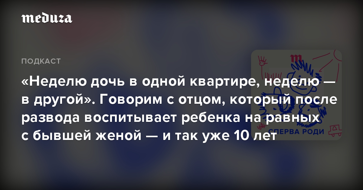 В третьем сезоне подкаста «Сперва роди» — второй выпуск и первый гость. Знакомьтесь: Борис Касавин, 39 лет, живет в Екатеринбурге. Его дочери Жене 12 лет, из них 10 лет она живет на два дома — потому что мама и папа в разводе. Причем «живет на два дома» — это не фигура речи. После развода Борис пополам разделил с бывшей женой обязанности по воспитанию ребенка. И теперь Женя неделю живет с мамой, а неделю — с папой.