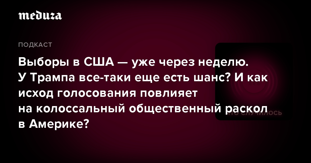 🎙Подписывайтесь на подкаст «Что случилось», мы есть на всех основных платформах: Apple Podcasts, Google Podcasts, Castbox, на «Яндекс.Музыке» и других подкаст-сервисах. А также подписывайтесь на ютьюб-канал с нашими подкастами, там тоже можно комментировать главные новости дня. Пишите нам по адресу [email protected] или в телеграм @meduzalovesyou.