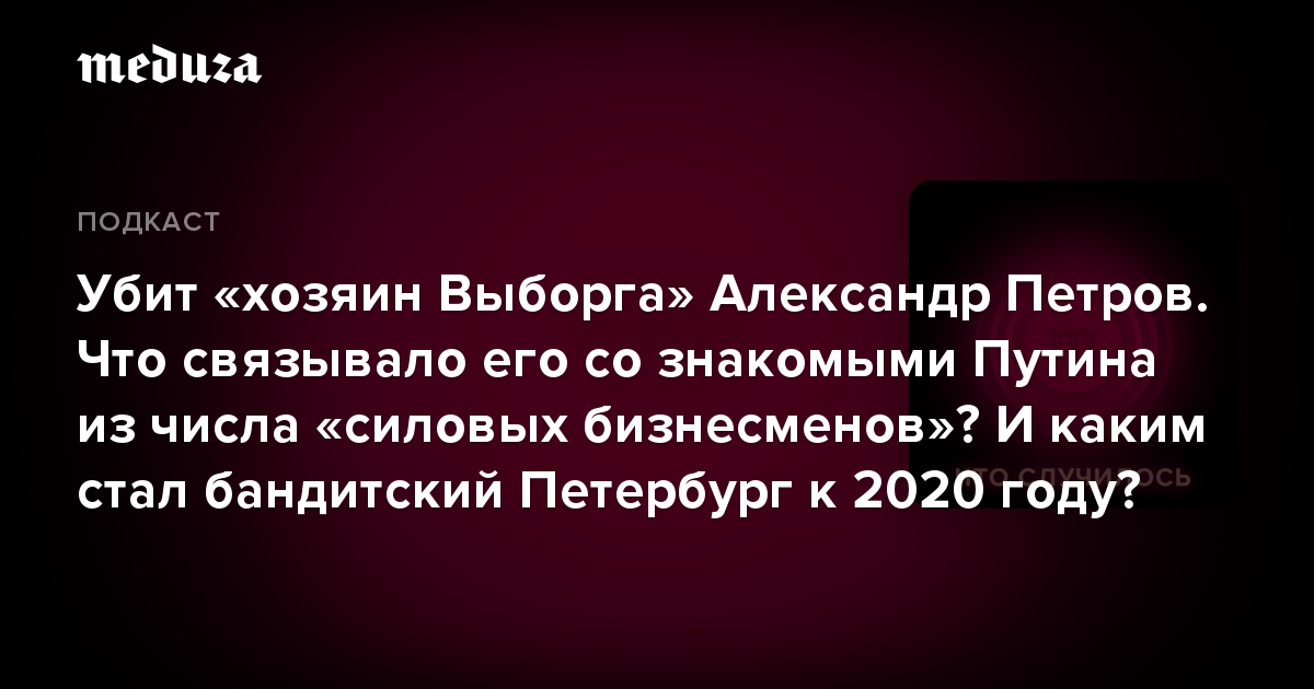 О Петрове и о том, во что превратились герои бандитского Петербурга к 2020 году, рассказывает заместитель главного редактора «Фонтанки» Евгений Вышенков.