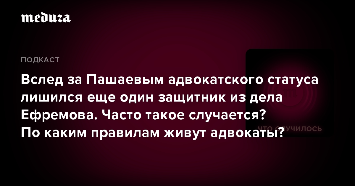 Это уже третий случай за последние несколько недель, когда адвокатов, которые участвуют в резонансных процессах, лишают статуса. В сентябре в такой ситуации оказался адвокат Эльман Пашаев, представлявший интересы актера Михаила Ефремова.