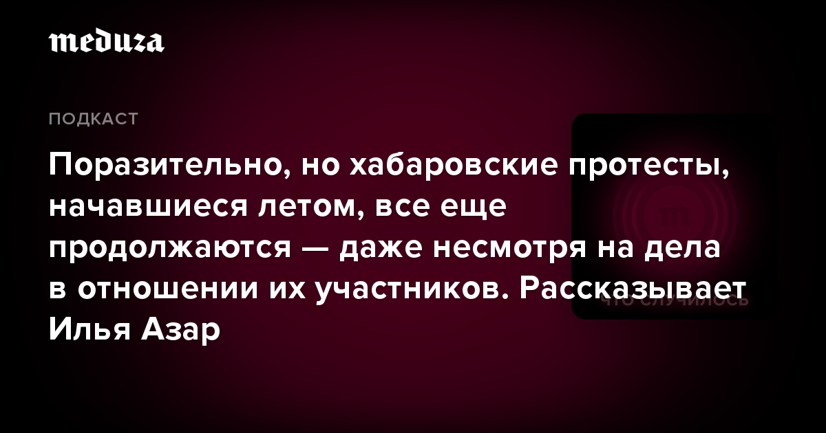 Специальный корреспондент «Новой газеты» Илья Азар съездил в Хабаровск и написал большой репортаж. В новом эпизоде подкаста «Что случилось» журналист рассказывает: