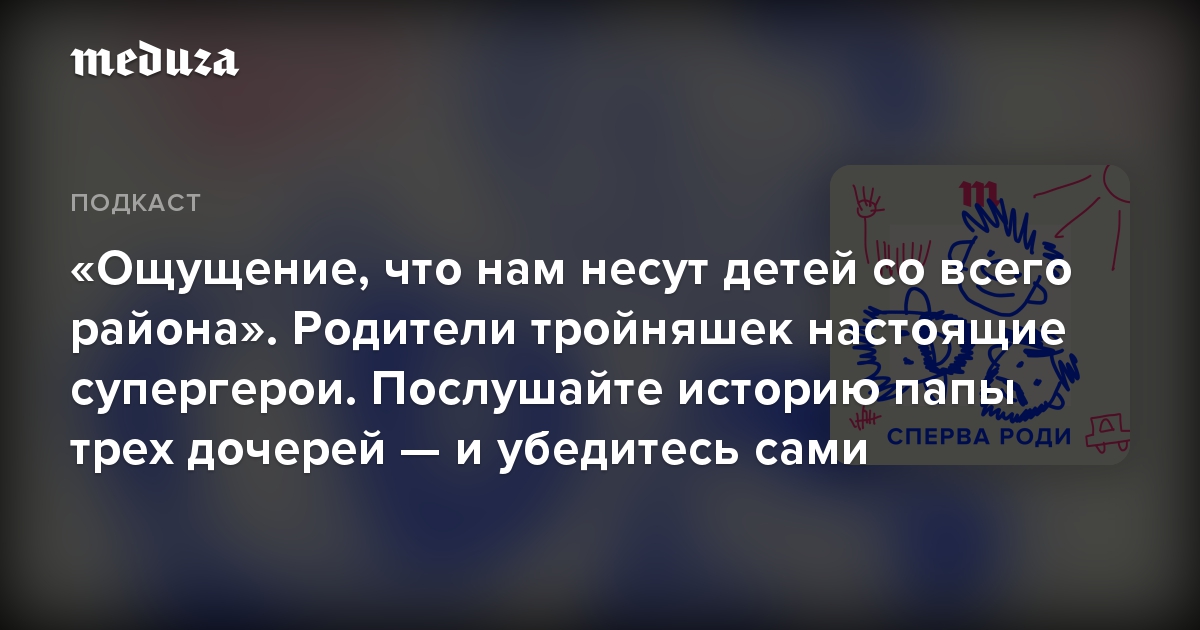 🎙 Чтобы не пропустить новые эпизоды «Сперва роди», подписывайтесь на подкаст в Apple Podcasts, «Яндекс.Музыке», Castbox и на «Букмейте». А еще у подкастов «Медузы» есть свой ютьюб-канал, там нас тоже можно слушать. И не забывайте, пожалуйста, писать нам письма: в телеграм @meduzalovesyou (мы любим аудиосообщения!) или на почту [email protected].