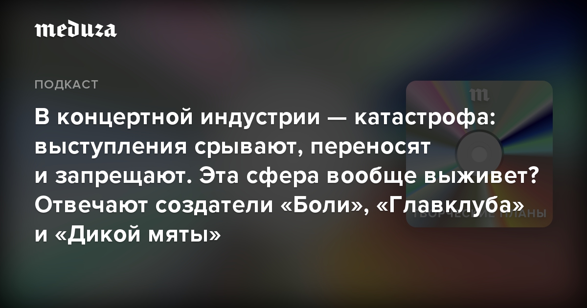 В концертной индустрии — катастрофа: выступления срывают, переносят и запрещают. Эта сфера вообще выживет? Отвечают создатели «Боли», «Главклуба» и «Дикой мяты»