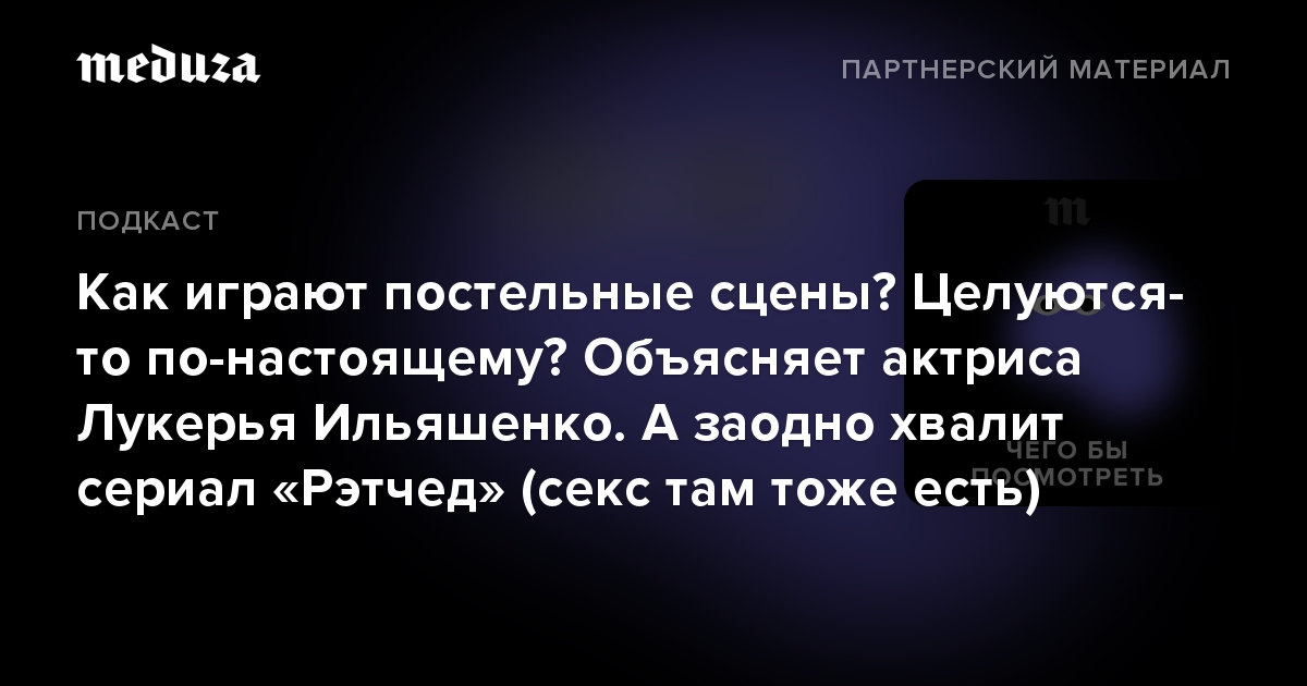 Как играют постельные сцены? Целуются-то по-настоящему? Объясняет актриса Лукерья Ильяшенко. А заодно хвалит сериал «Рэтчед» (секс там тоже есть)