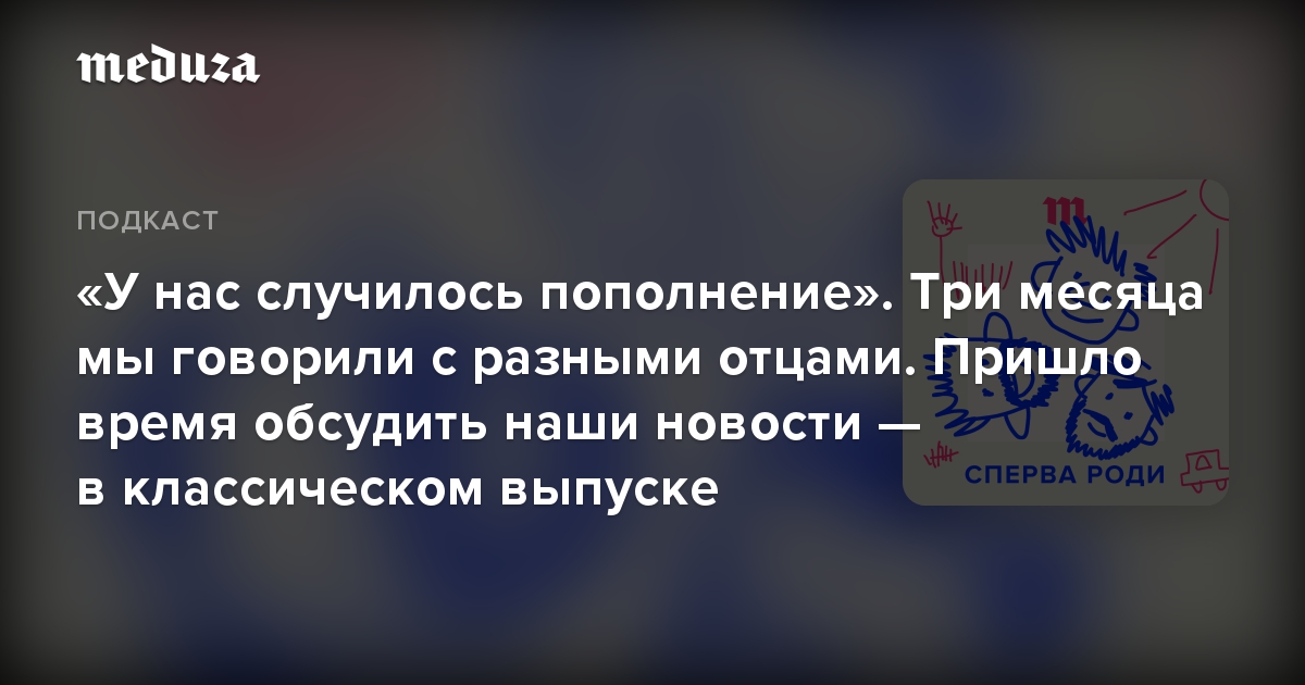 🎙 Чтобы не пропустить новые эпизоды «Сперва роди», подписывайтесь на подкаст в Apple Podcasts, «Яндекс.Музыке», Castbox и на «Букмейте». А еще у подкастов «Медузы» есть свой ютьюб-канал, там нас тоже можно слушать. И не забывайте, пожалуйста, писать нам письма: в телеграм @meduzalovesyou (мы любим аудиосообщения!) или на почту [email protected].