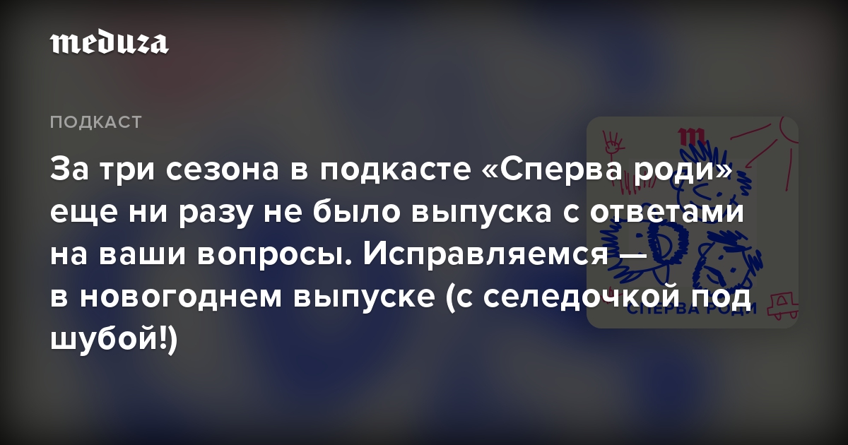 В выпуске удалось ответить на внушительную часть вопросов, но, конечно, не на все. Продолжайте писать нам письма — мы все читаем и на многие успеваем отвечать. К тому же часто ваши письма вдохновляют нас на записи новых выпусков. Писем мы ждем на [email protected] и в телеграме @meduzalovesyou. Кроме того, мы обожаем ваши оценки и комментарии в Apple Podcasts, «Яндекс.Музыке», Castbox и на «Букмейте». Еще у подкастов «Медузы» есть свой ютьюб-канал, там нас тоже можно слушать. До скорой встречи и с Новым годом!