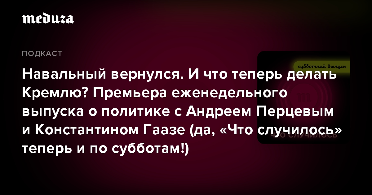 У новостного подкаста «Что случилось», как мы и обещали, теперь есть специальный выпуск о политике, который будет выходить по субботам. Каждую неделю специальный корреспондент «Медузы» Андрей Перцев и социолог, политический обозреватель Константин Гаазе будут обсуждать, чем живет российская власть. Каковы смыслы, картина мира и логика, которыми руководствуются «власть», «режим», «Кремль» и так далее?