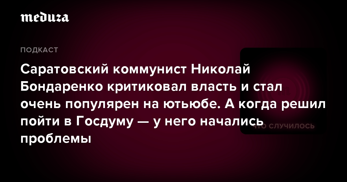 В сегодняшнем выпуске подкаста «Что случилось» мы поговорили с Николаем Бондаренко: